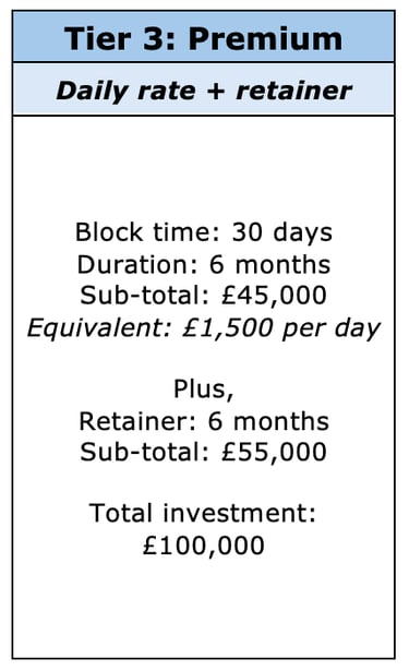 Tier 3: Premium, daily rate plus retainer model